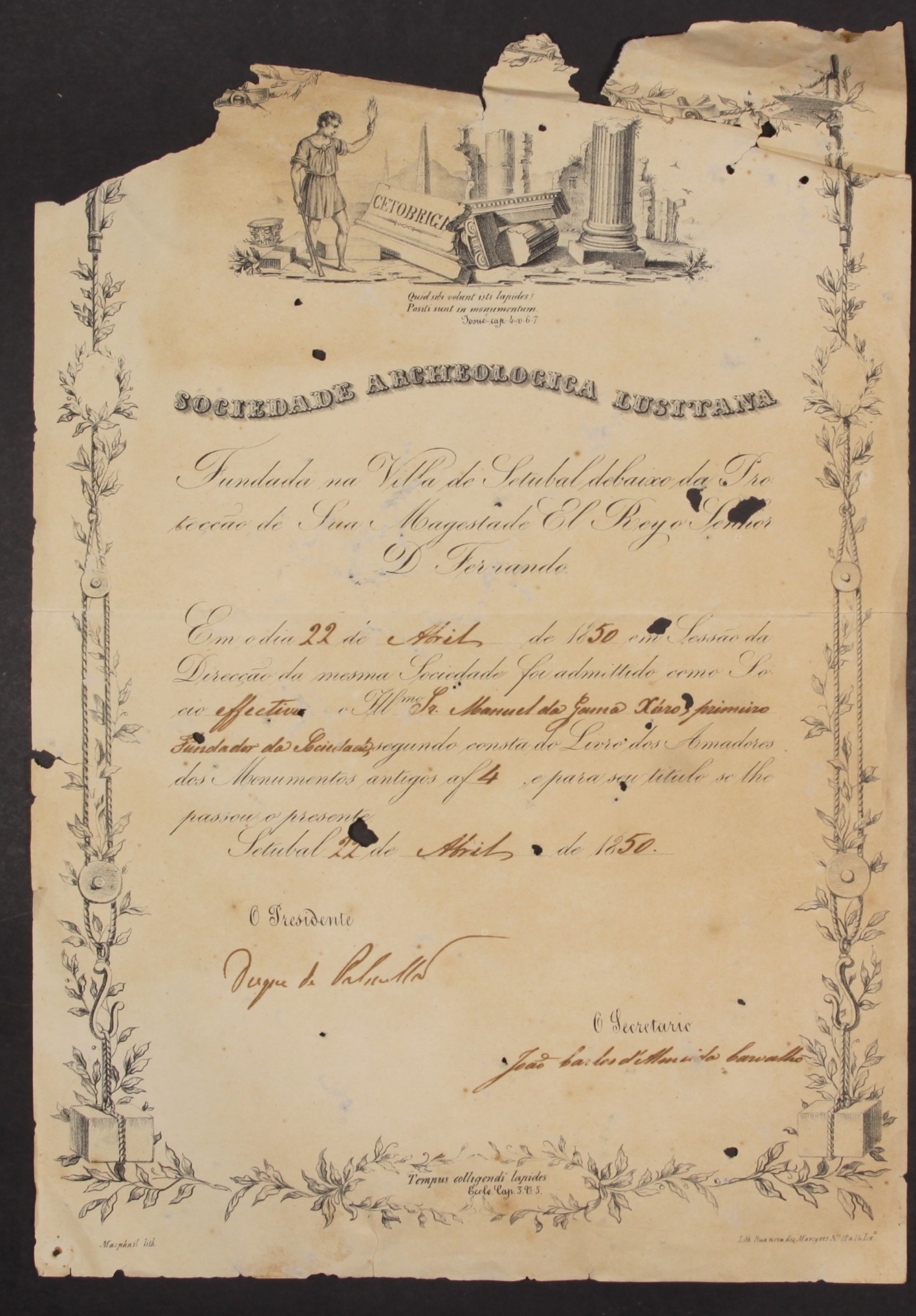 O Arquivo Distrital de Beja destaca como documento do mês de janeiro alguns títulos de sócio de diversas academias e sociedades dos quais Manuel da Gama Xaro era associado, nomeadamente da Academia Real de Ciência, Sociedad Arqueológica Española, Sociedade Agrícola de Beja, Sociedade Arqueológica Lusitana e ainda a nomeação como membro do Conservatório Real de Lisboa. … Continue a ler Títulos de sócio de Manuel da Gama Xaro