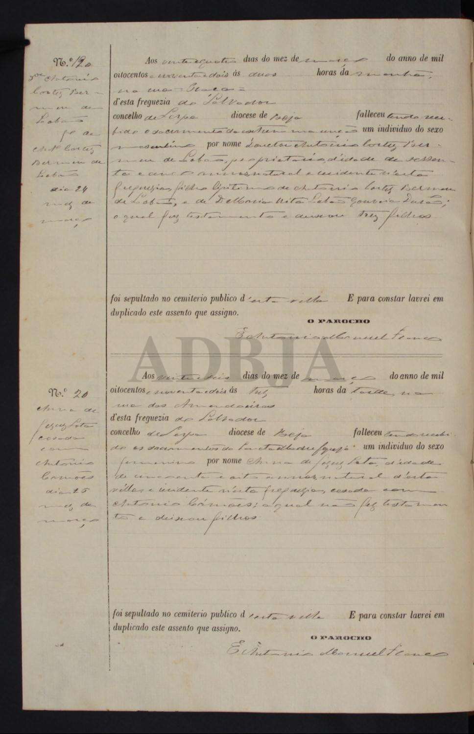Assento de óbito de António Cortez Bermeu Lobão